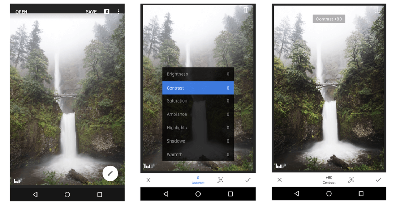 و به همین سادگی کار به پایان میرسد. اکنون بنیادینترین ویرایشهای در دسترس در Snapseed را پشت سر گذاشتهاید. البته که میتوانید به شکلی آزادانه مشغول آزمون و خطا با دیگر گزینههای موجود در منوی Tune Image شوید. برای مثال میتوانید به سراغ ابزارهای Highlight و Shadows بروید که بار دیگر تاثیری چشمگیر روی میزان روشنایی میگذارند.
