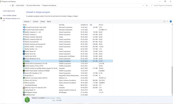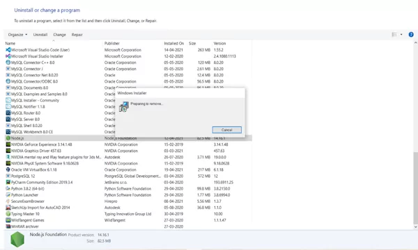 در بخش های بالا آموزش نصب Node.js در ویندوز و مک به صورت کامل ارائه شد اما برای حذف نصب آن باید چه کاری انجام داد؟ حذف نصب نود جی اس در ویندوز مانند سایر برنامهها بوده و بسیار آسان است ولی با این حال در این بخش به نحوه انجام این کار خواهیم پرداخت. برای انجام این کار باید به سادگی چند مرحله زیر را طی کرد.