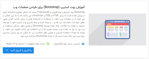 کدهای فوق از سایت بوتاسترپ در بخش «Basic Template» کپی و سپس تغییراتی روی آنها اعمال شده است. در خط دوازدهم فایلهای CSS بارگذاری شدهاند. فایل custom.css نیز باید در پوشه css پروژه ایجاد شود. همچنین در کدنویسی قالب، بارگذاری jQuery و بوتاسترپ انجام شده است.