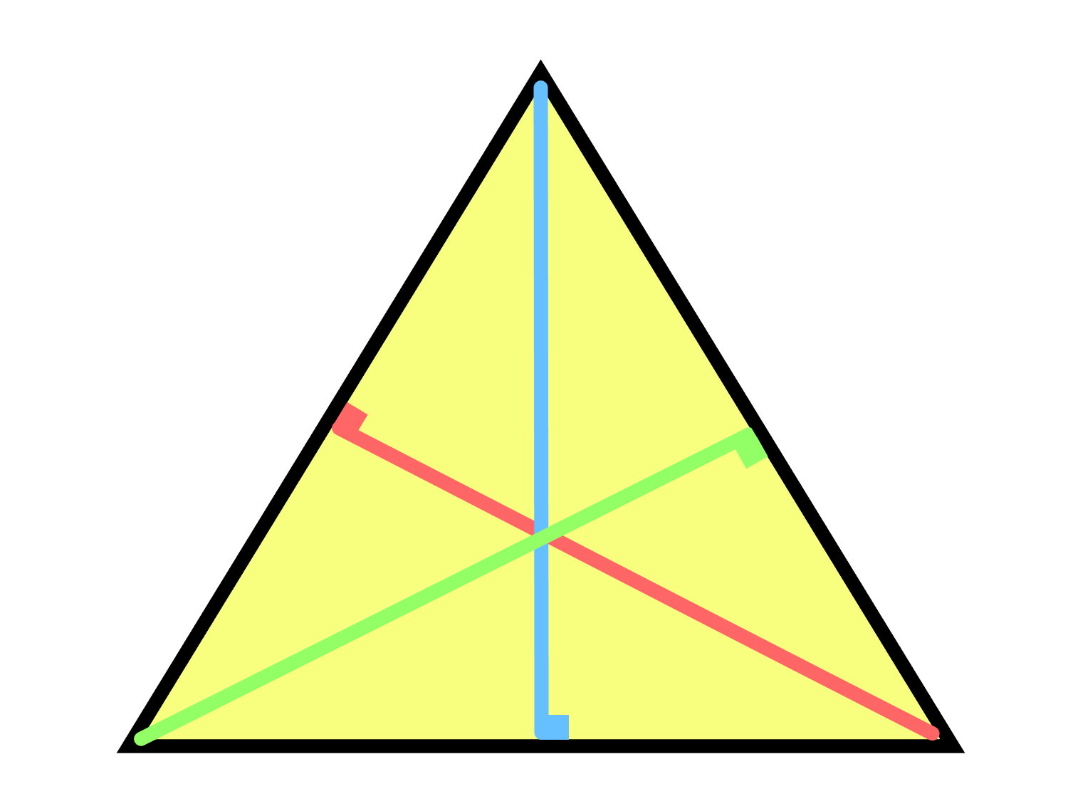 ارتفاعها در این نوع مثلث با هم برابرند و از راس به وسط ضلع مقابل میرسند.