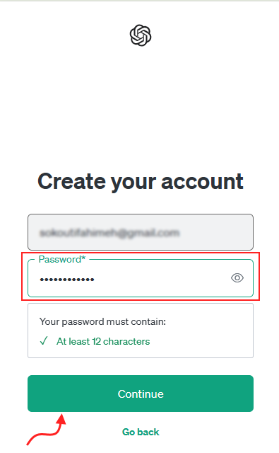 سپس به مرحله بعد بروید که در آن چتجیپیتی از شما میخواهد تا پسوردی را برای حساب ChatGPT خود برگزینید.