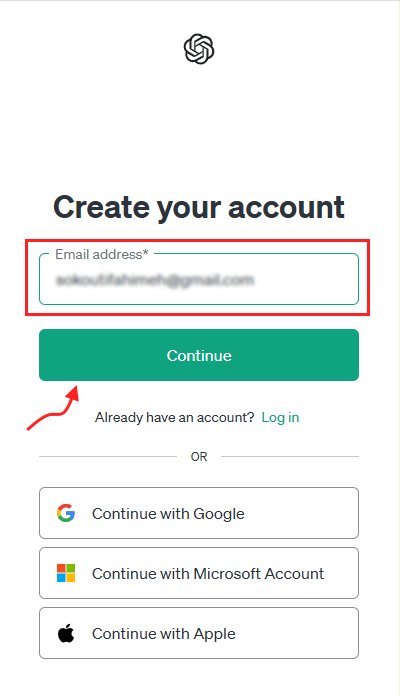 - از طریق آدرس ایمیل و کلمه عبوری که پیش از این با آن در ChatGPT ثبتنام کردهایم.