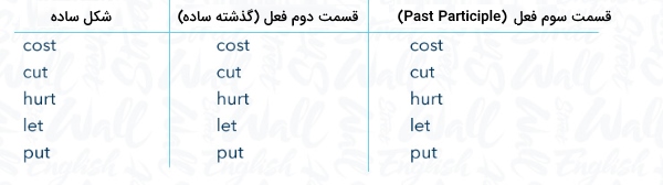 - افعال بیقاعده با شکل گذشته و سوم فعل یکسان