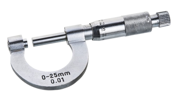 با مشاهده دستگاه میتوانید تشخیص دهید که دقت دستگاه ۱ میلیمتر است و بیشترین مقداری که میتواند اندازه گیری کند ۲۵ میلیمتر است. همان طور که میبینید فاصله بین هر دو عدد به ۵ قسمت تقسیم شده است. مثلاً عدد ۵ را در شکل بالا در نظر بگیرید، عدد بعدی که روی دستگاه میبینید ۱۰ است و ۴ خط بین ۵ و ۱۰ وجود دارد که بیانگر اعداد ۶، ۷، ۸ و ۹ است، این موضوع نشان میدهد که دقت دستگاه شما ۱ میلیمتر است.