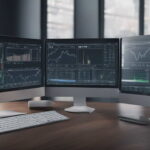 چندین مانیتور که همگی تصاویری از نمودار قیمت را نشان می‌دهند.