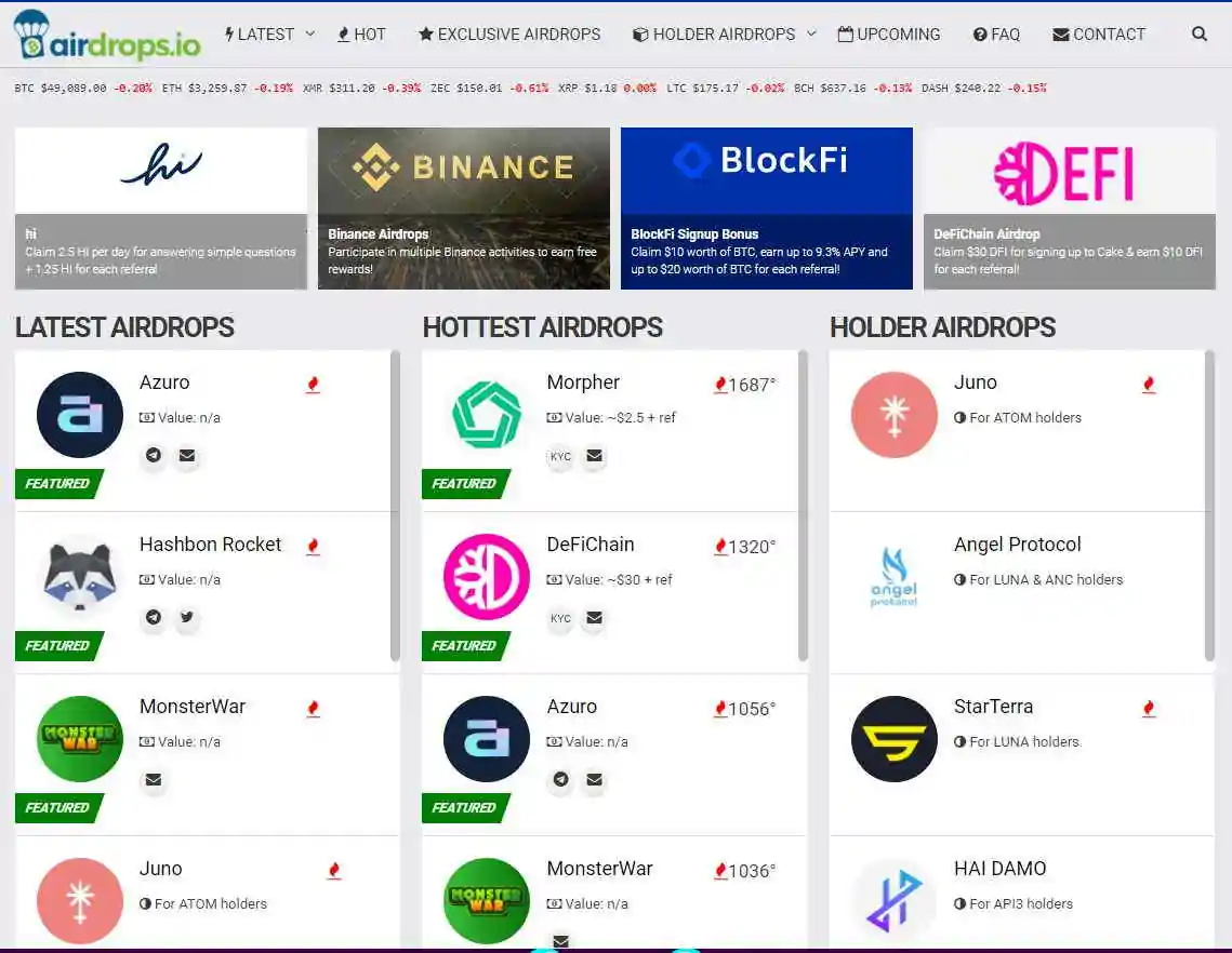 سایت «ایردراپ آلرت» یکی از وبسایتهای تخصصی معرفی ایردراپها است. در این وبسایت میتوانید ایردراپهای در حوزههای مختلف ارزهای دیجیتال را بررسی کنید. با مراجعه به صفحه اول این سایت، چند ستون مشاهده میکنید که این ستونها شامل ایردراپهای جدید، ایردراپهای قدیمی و ایردراپهای حوزه امورمالی غیرمتمرکز (DeFi) است.