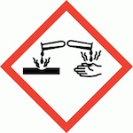 ![]() | مواد خورنده، خطر آسیب شدید به پوست یا چشم و فلزات |
