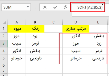 استفاده از تابع Sort در اکسل به همراه تمام آرگومانهای اختیاری