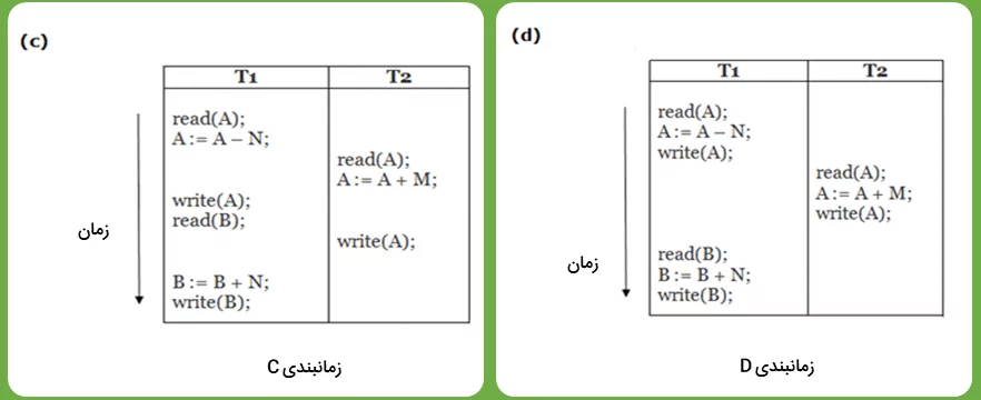 «زمانبندی C» و «زمانبندی D»، بیانگر زمانبندی غیر سریالی هستند و درهم آمیختگی عملیات را نشان میدهند.