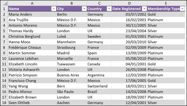 در این مرحله جدولی از داده‌ها شکل می‌گیرد و همانطور که می‌بینید در اصل موفق به رنگی کردن یک در میان سطرهای اکسل شده‌ایم. لازم به یادآوری است که این قالب‌بندی به صورت خودکار هنگامی که سطرهای جدیدی به جدول اضافه شوند، تداوم می‌یابد.