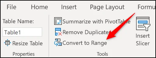 به این منظور روی یک سلول جدول کلیک کرده و زبانه Table Design را انتخاب کنید. سپس روی Convert to Range کلیک کنید.