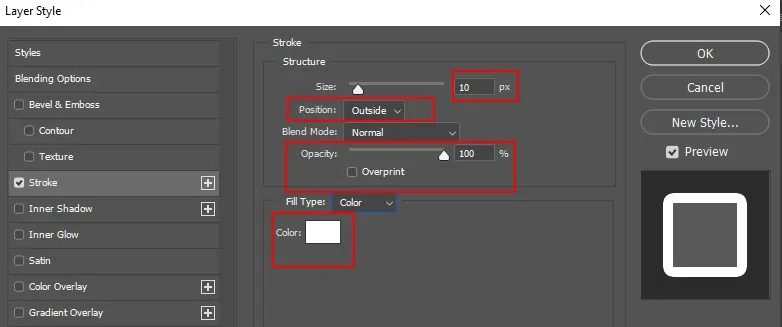 تا اینجا تقریبا استیکر ما آماده شده است. به طور معمول، حاشیهای سفید نیز در اطراف استیکر ایجاد میکنند تا جلوه بهتری داشته باشد. برای ایجاد حاشیه سفید، بر روی لایه «استیکر تلگرام» در تصویر بالا، دو بار کلیک میکنیم تا پنجره «Layer Style» باز شود. در پنجره باز شده به بخش «Stroke» میرویم و مطابق تصویر زیر، تنظیمات «Stroke» را برای آن تغییر میدهیم. میتوانید تنظیمات مختلفی را امتحان کنید و نتیجه را در خروجی ببینید. همچنین، در بخش «Color»، رنگ دلخواه خود را انتخاب کنید.