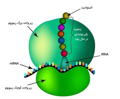 ریبوزومها اندامکهای کوچکی هستند که عمدتاً از 60 درصد RNA ریبوزومی (rRNA) و 40 درصد پروتئین تشکیل شدهاند. همه سلولهای زنده حاوی ریبوزوم هستند که ممکن است آزادانه در سیتوپلاسم در گردش باشند و برخی به شبکه آندوپلاسمی متصل هستند که محلی برای سنتز پروتئین است. در یک سلول یوکاریوتی، ریبوزومها نیمی از RNA ریبوزومی و نیمی از پروتئینهای ریبوزومی را تشکیل میدهند. هر ریبوزوم از دو زیر واحد تشکیل شده است. زیر واحد بزرگ و زیر واحد کوچک که هر کدام دارای اشکال متمایز خود هستند.