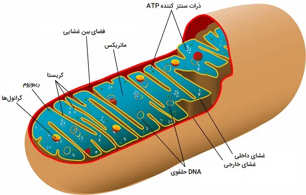 میتوکندری اندامکهای بزرگی هستند که هم غشای داخلی و هم غشای خارجی دارند و همچنین DNA میتوکندریایی خود را دارند. میتوکندریها محل تنفس سلولی در سلولها هستند، جایی که اکسیژن و گلوکز به آدنوزین تری فسفات (ATP) تبدیل میشوند که سلولها از آن برای انرژی استفاده میکنند. تعداد میتوکندریهای موجود در هر سلول بسته به عملکرد سلول بسیار متفاوت است. آنها میلهای یا بیضی یا کروی شکل هستند و اندازه آنها 0/5 تا 10 میکرومتر است. میتوکندری دارای دو غشای بیرونی و داخلی است. یک ژل - ماتریکس میتوکندری در توده مرکزی میتوکندری وجود دارد. غشای داخلی به شکل چینهایی به نام «کریستا» (cristae) خم میشوند.