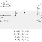 در معادله (۳)، و به ترتیب مولفههای «مماسی» (Tangential) میدان الکتریکی در محیطهای اول و دوم و در طول سطح مشترک هستند. دو معادله (۳) و (۴) بیان میکنند که اگر منبع جریان مغناطیسی در سطح مرز مشترک وجود نداشته باشد، مولفههای مماسی میدان الکتریکی دو محیط در طول سطح مشترک پیوسته و با هم برابر هستند.