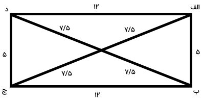 قطر مستطیل نصف مجموع طول و عرض است و زاویه های قائمه نقشی ندارند.
