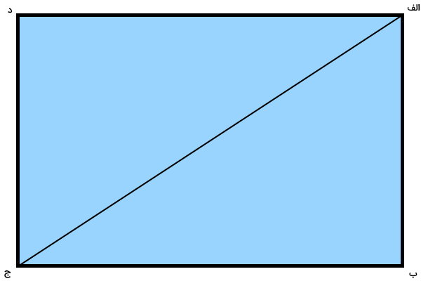 به منظور رسم قطرهای مستطیل، مداد خود را بر روی یکی از گوشهها (مانند گوشه الف) قرار میدهیم. سپس، پارهخطی را از آن گوشه به گوشه مقابل (مانند گوشه ج) رسم میکنیم.