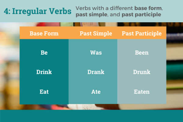 در زبان انگلیسی ممکن است با افعالی روبه‌رو شوید که صرف زمان گذشته یا اسم مفعول آن با چیزی که انتظار دارید فرق دارد. به عنوان مثال، شکل زمان گذشته فعل «drive» به صورت «drived» نیست. یا شکل گذشته فعل «beat» به صورت «beated» مورد استفاده قرار نمی‌گیرد.