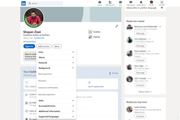برای تبدیل پروفایل ساده لینکدین به پروفایل حرفهای مراحل زیر را دنبال کنید: