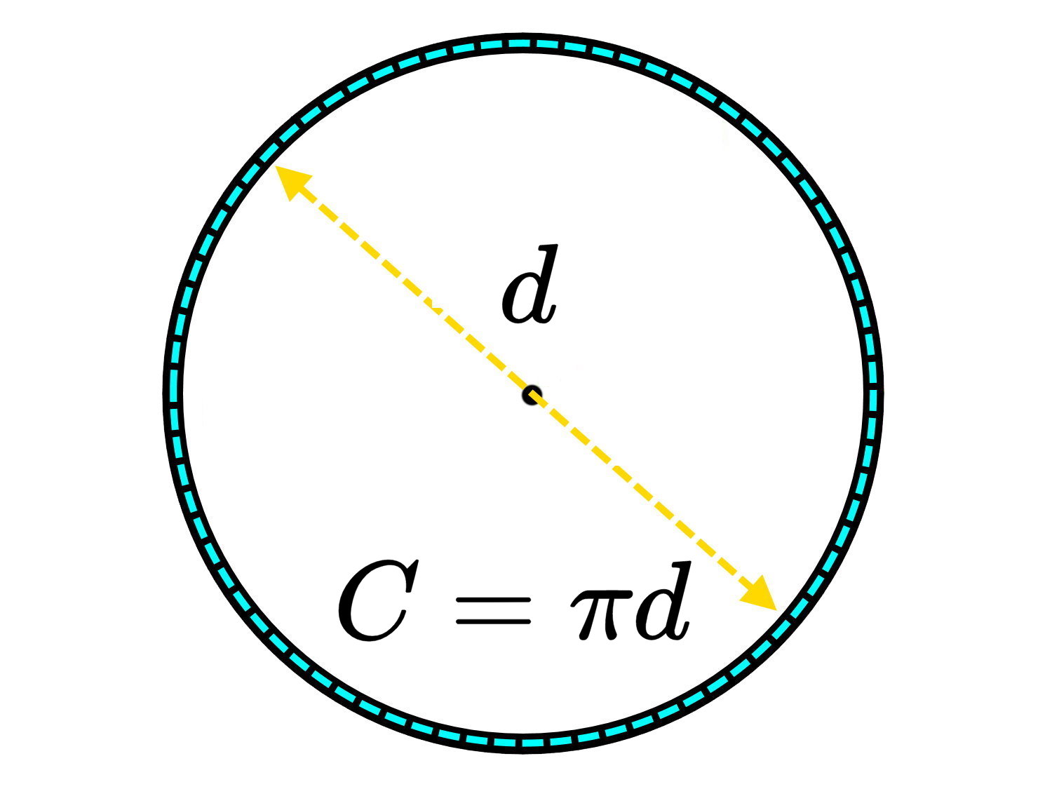 فرمول محیط دایره با قطر، C=πd (پی دی) است. در این فرمول، d، قطر دایره π، عدد ثابت 3/14 را نمایش می‌دهد.