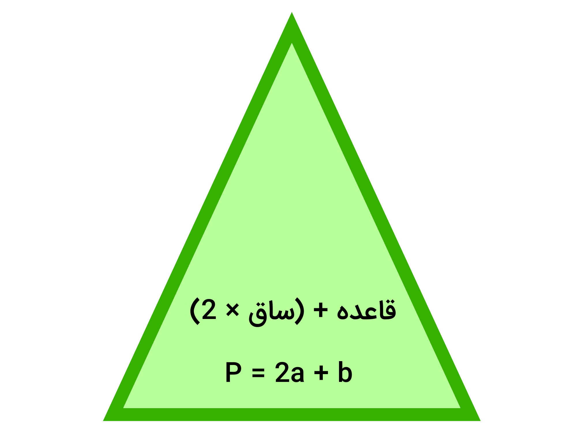 فرمول P = 2a + b است که a یعنی ساق و b یعنی قاعده مثلث