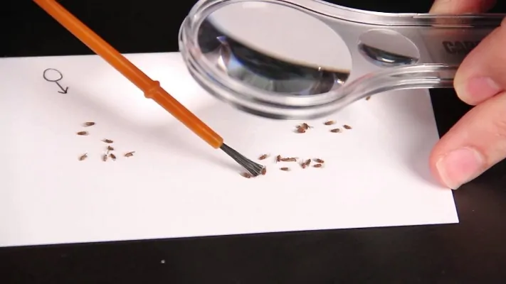 با کمی تمرین، با نگاه کردن به شکم مگس، دانشجویان در تشخیص دقیق جنسیت مگسها مهارت پیدا میکنند. هنگام انجام کراس، جفتگیری مگسهای سرکه بسیار مهم است، بنابراین دانشجویان باید در تشخیص تفاوت جنسیت اطمینان داشته باشند. برای اینکه دانشجویان بتوانند با جفتگیری مگسها راحت باشند، 25 مگس نر و ماده یا بیشتر به آنها بدهید یا به آنها اجازه دهید مگسها را به دو توده نر و ماده تقسیم کنند.