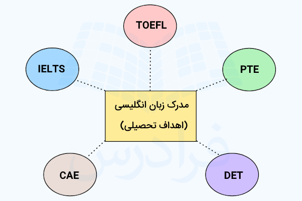 ۵ مدرک زبان انگلیسی وجود دارند که شما میتوانید برای اهداف تحصیلی گوناگون اخذ کنید. این مدارک عبارتند از: