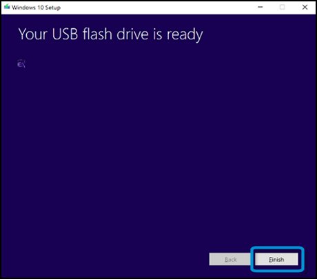 پس از آن که کار ایجاد درایو یواسبی نصب ویندوز از سوی ابزار Media Creation پایان یافت، روی Finish کلیک کنید.