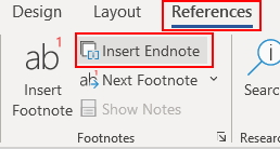 برای اضافه کردن پینوشت، ابتدا سند ورد را باز کنید و سپس نشانگر ماوس را در جای مناسب بگذارید. در مرحله بعد، به زبانه References بروید و از بخش Footnote، روی گزینه «Insert Endnote» کلیک کنید.
