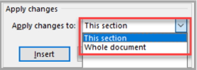 همچنین در بخش «Apply Changes to»، میتوانید برگزینید که تغییرات مورد نظر، روی متن انتخابی، بخش جاری یا کل سند اعمال شوند.