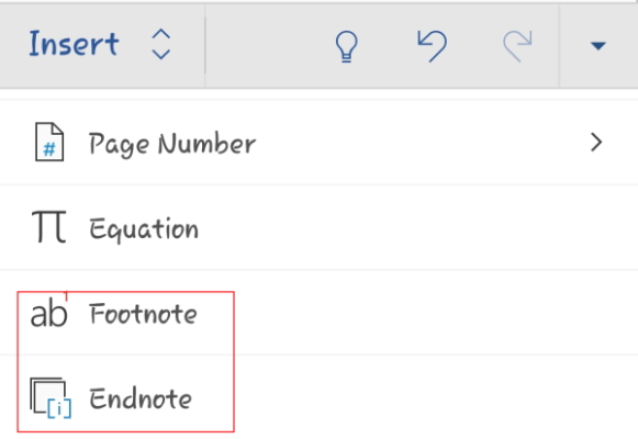 برای درج پاورقی یا پینوشت در ورد گوشی، وارد سند خود شوید. سپس در کنار کلمه مورد نظر ضربه بزنید تا نشانگر به آن مکان منتقل شود. حالا در نوار ابزار پایینی، فلش گوشه سمت راست را انتخاب کنید. به این شکل منو گستردهتر میشود. در سمت چپ، روی گزینه «Home» بزنید تا سایر زبانهها ظاهر شوند و بعد گزینه Insert را بزنید. سپس در بین موارد موجود در این زبانه پایین بروید و در انتها، یکی از گزینههای Footnote را برای پاورقی یا Endnote را برای پینوشت برگزینید.