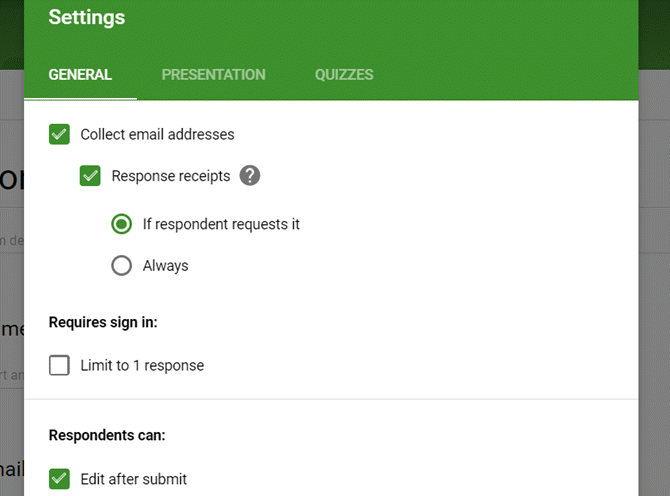 همچنین میتوانید توانایی کاربر برای ویرایش پاسخها پس از تحویل فرم را غیرفعال کنید.
