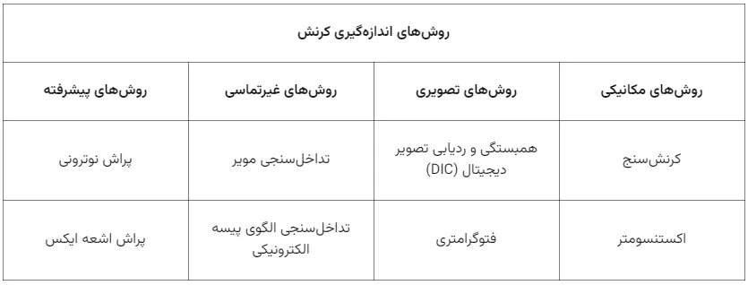 اصلیترین روشهای اندازهگیری کرنش، عبارت هستند از: