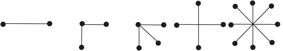 هر یک از گراف‌های شکل زیر، n رأس دارند، که 1-n تا از رئوس آن‌ها به یک رأس متصل است.