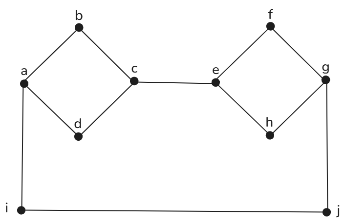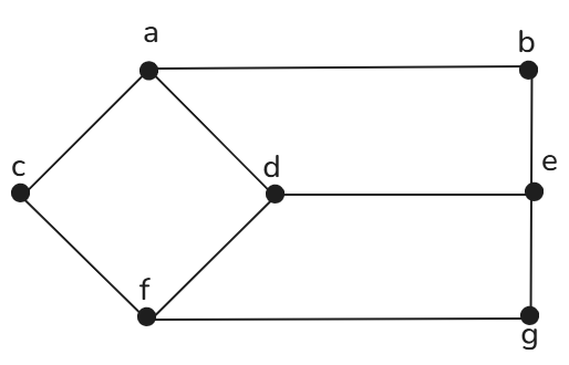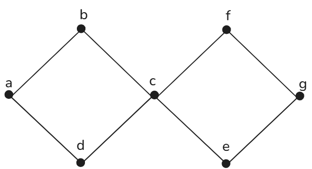 • deg(c) = 1، زیرا رأس «c» یک یال دارد. بنابراین، «c» یک رأس آویزان است.