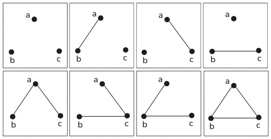 در شکل زیر، cd ،ac ،ab و bd یال‌های گراف هستند. به‌طور مشابه، c ،b ،a و d رئوس گراف را نشان می‌دهند.