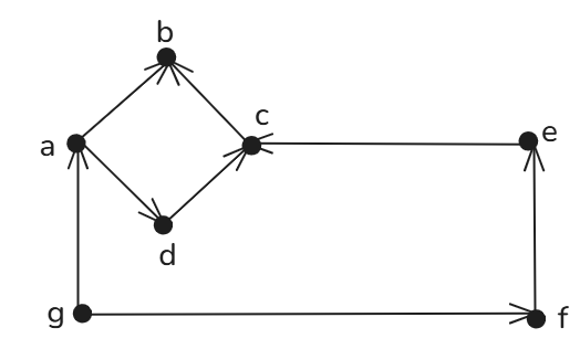در گراف شکل زیر، دو دور a-b-c-d-a و c-f-g-e-c وجود دارد. بنابراین، گراف زیر یک گراف مدوّر یا دوردار است.