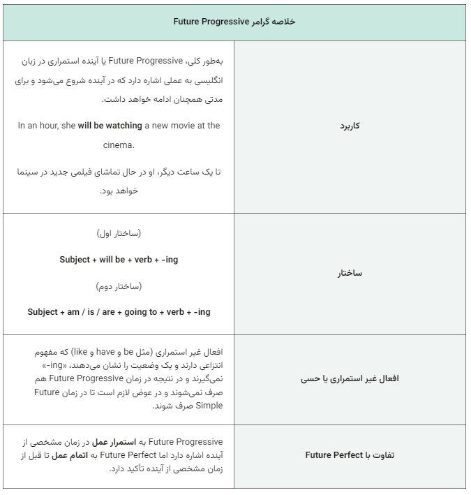 - با ساختار و کاربرد زمان Future Progressive در جملات انگلیسی آشنا میشوید.