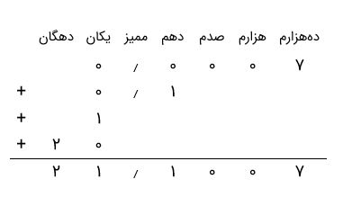 - مکان دهم: ۷ تا یکدهم = ۰٫۱ × ۷ = ۰٫۷