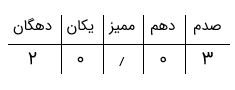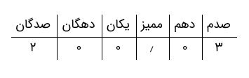 | هزارم | صدم | دهم | یکان | دهگان | صدگان |