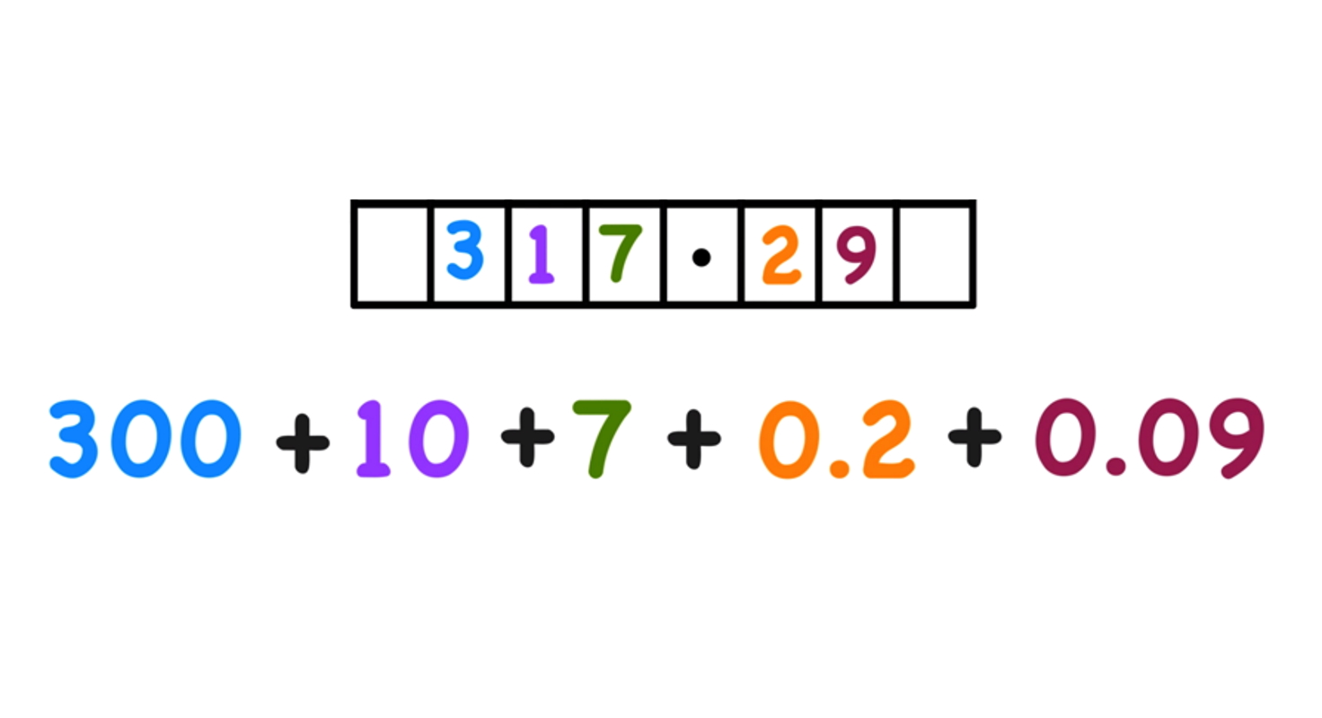 نوشتن هر رقم اعشاری به صورت کسر جداگانه و جمع آنها برای مشاهده ارزش مکانی