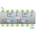 شمای یک گیت OR منطقی 7432 با چهار گیت دو ورودی به صورت زیر است.