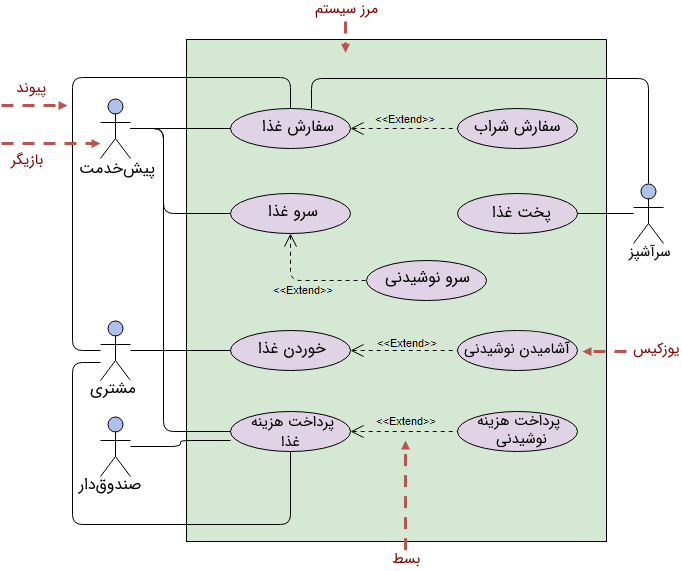 نمودار زیر، یوزکیس دیاگرام رستوران را نشان میدهد.