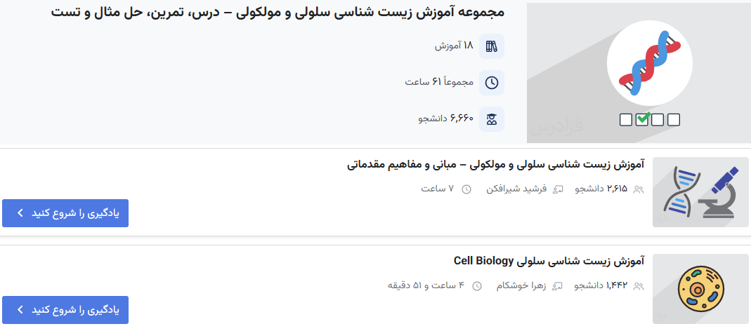 - فیلم آموزش مبانی و مفاهیم مقدماتی زیست شناسی سلولی و مولکولی فرادرس
