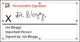 زمانی که گزینههای امضا را تأیید کنید، یک خط امضا به همراه یک علامت ضربدر برای نشان دادن محلی که باید امضا شود به سند اضافه میشود.