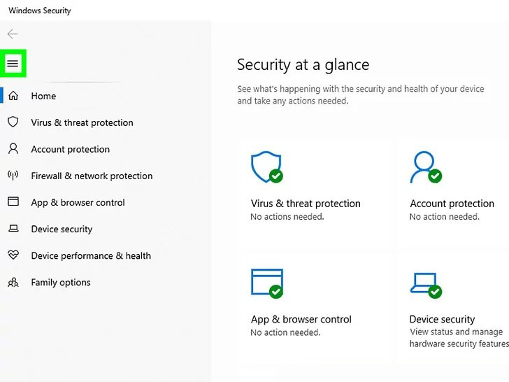 روی گزینه Virus & threat protection در بخش چپ-بالای پنجره ویندوز دیفندر کلیک کنید.