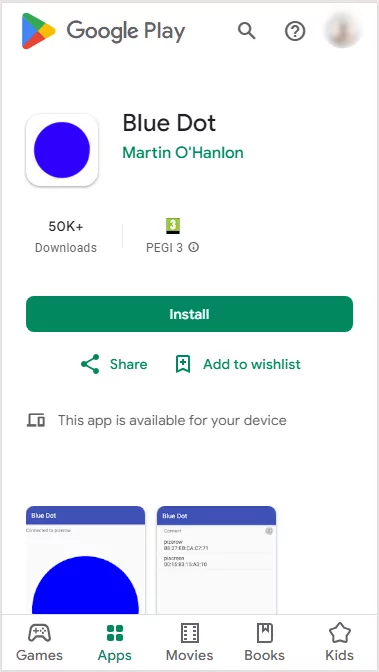 - لینک دانلود اپلیکیشن Blue Dot از پلیاستور: «+»