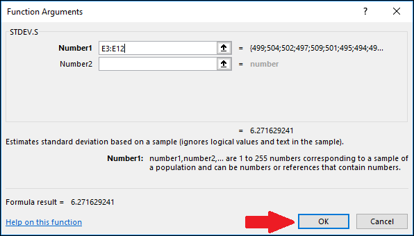 در این فرمول از تابع STDEV.S استفاده شده است: