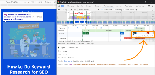 - معیار LCP روی نمودار زمانی برای شما نمایش داده میشود.