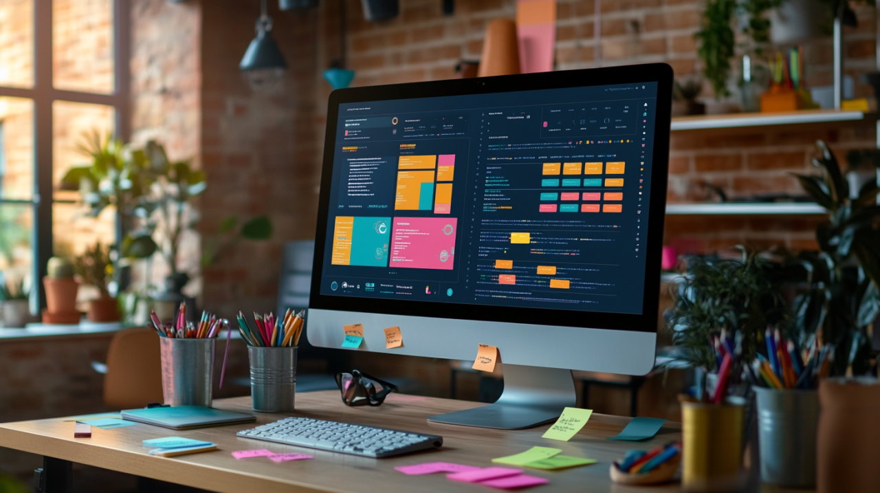 دختری در حال برنامه نویسی با یک مانیتور بزرگ است - enum در سی شارپ